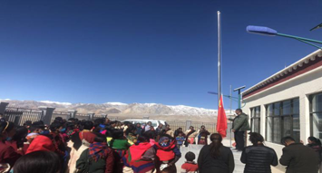 开展升国旗仪式。交通运输厅26个驻村工作队组织在家的农牧民群众隆重举行了“升国旗、唱国歌”仪式。通过仪式提升了农牧民群众对祖国的自豪感,培养了农牧民群众的爱国主义情操。此次共有8050多名群众参加仪式。