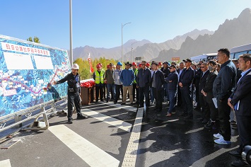 10月18日,区交通运输厅组织机关相关业务处室,区重点公路建设项目管理中心、西藏交通发展集团及在建项目主要负责同志前往国道349线贡嘎机场过境段机场进场快速路、拉萨至日喀则机场高速公路控制性工程(拉萨段)建设现场以及交通应急抢险物资储备库进行观摩学习,并召开专题会议交流经验,现场解决各类问题。区交通运输厅党委副书记、厅长徐文强带队观摩并主持会议。
