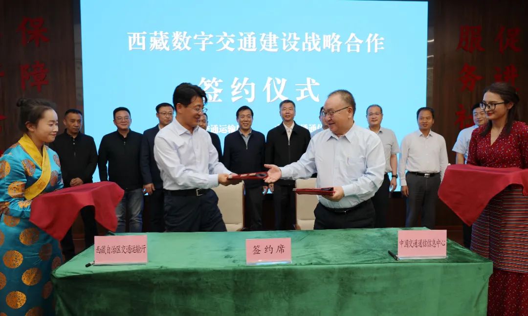 7月29日,西藏数字交通建设领导小组召开第1次会议,听取了西藏数字交通建设工作进展汇报,并就下一步工作重点进行了部署。期间,西藏自治区交通运输厅与中国交通通信信息中心在林芝市签署战略合作协议,双方就携手推进西藏数字交通建设达成合作共识。西藏自治区交通运输厅党组副书记、厅长刘志强和中国交通通信信息中心主任徐鹏展分别代表双方在战略合作协议上签字。区交通运输厅党组委员、副厅长李华强主持会议和战略合作协议签署仪式,中国交通通信信息中心副主任林榕出席。