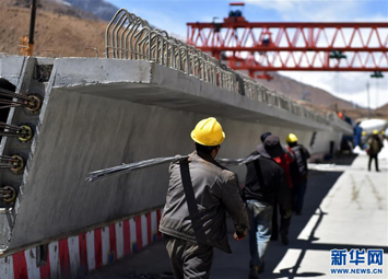2018年4月18日,工人在西藏拉萨至那曲高等级公路控制性工程羊八井峡谷施工。新华社记者 觉果 摄