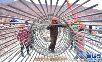 3月10日,工人在昌都至邦达机场高等级公路一期路段工程施工现场进行桩基施工。 新华社记者 晋美多吉 摄