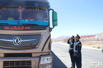 阿里公路部门路政执法人员检查货运车辆(央广网发 西藏自治区路政管理局供图)