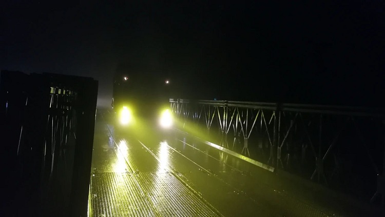 当晚的抢修重点是更换四块均重300多公斤的凹陷变形桥面板。由于桥面板凹陷变形,加之风雨交加,螺丝的拧卸难度增加,养护人员在操作过程中,为不让螺丝帽掉入桥下被洪水冲走,经过近1个小时的细致操作,在用掉4瓶除锈剂、用坏1个专业扳手后,将16颗螺丝完好无损地拧下。在更换桥面时,虽有机械辅助,仍需6人齐力将其抬出桥面,此时钢架桥下洪水滔滔,桥面因降雨极易打滑,养护队员克服各种艰险,在机械操作手的配合下,于当晚21时20分将四块桥面板全部更换完毕,波墨公路恢复了安全通行。待滞留司乘人员通行后,养护队员又将废弃的桥面板集中回收,确保路域环境整洁。