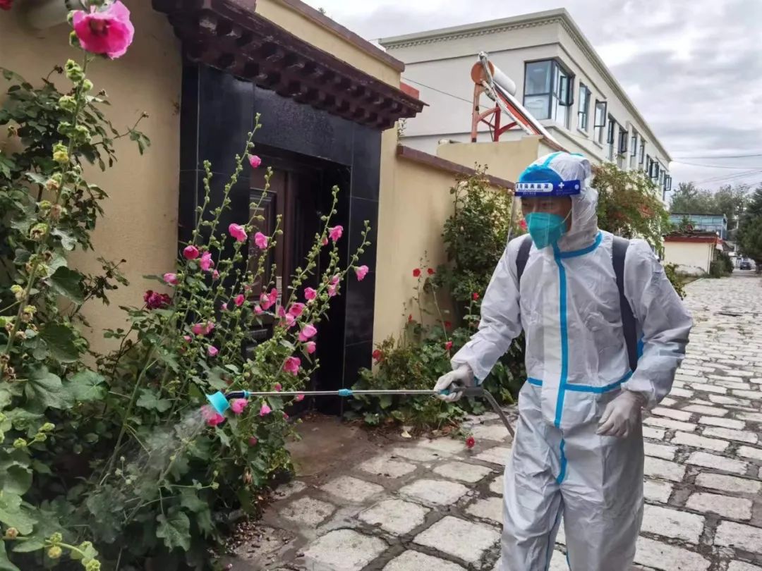 消毒消杀是疫情防控的重要工作。全副武装做好个人防护后,再背上50斤重的消毒设备并非易事。工作组的同志们每日不少于2次到办公楼、周转房、退休基地及公共区域消毒消杀工作,这是件繁重的体力活。