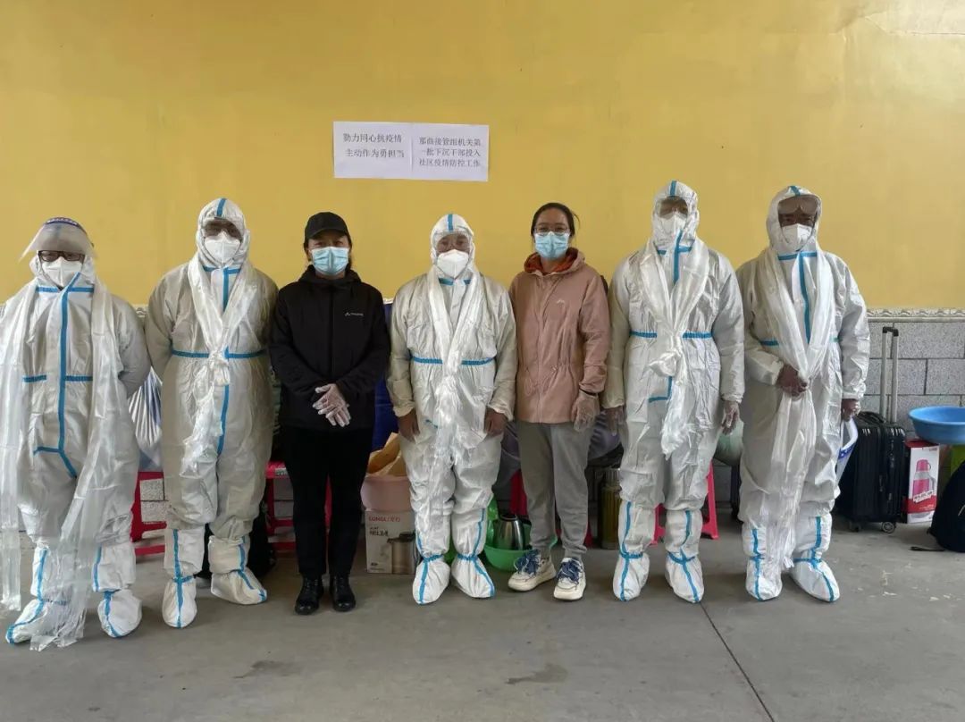 接管组机关下沉社区干部是以王筱钰同志为组长的5名党员干部于那曲市格萨尔赛马场集中隔离点进行志愿服务,在隔离核心区、后勤部开展抗疫工作。九月的那曲寒风凛冽、冰雪交加,吃住在简陋的黑色帐篷里,每天穿着密不透风的防护服、冒着被感染的风险接送密接、次密接人员,登记入住信息、安排隔离帐篷、送一日三餐、补给生活物资、清理生活垃圾和排泄物、关注隔离人员身体状况、协调核酸检测结果异常人员转运工作、搬卸各类防疫物资等。共清理隔离人员生活垃圾及排泄物累计2吨有余、消杀解除隔离帐篷、转阳帐篷累计约3160平方米、协助搬卸各类防疫物资10余吨。