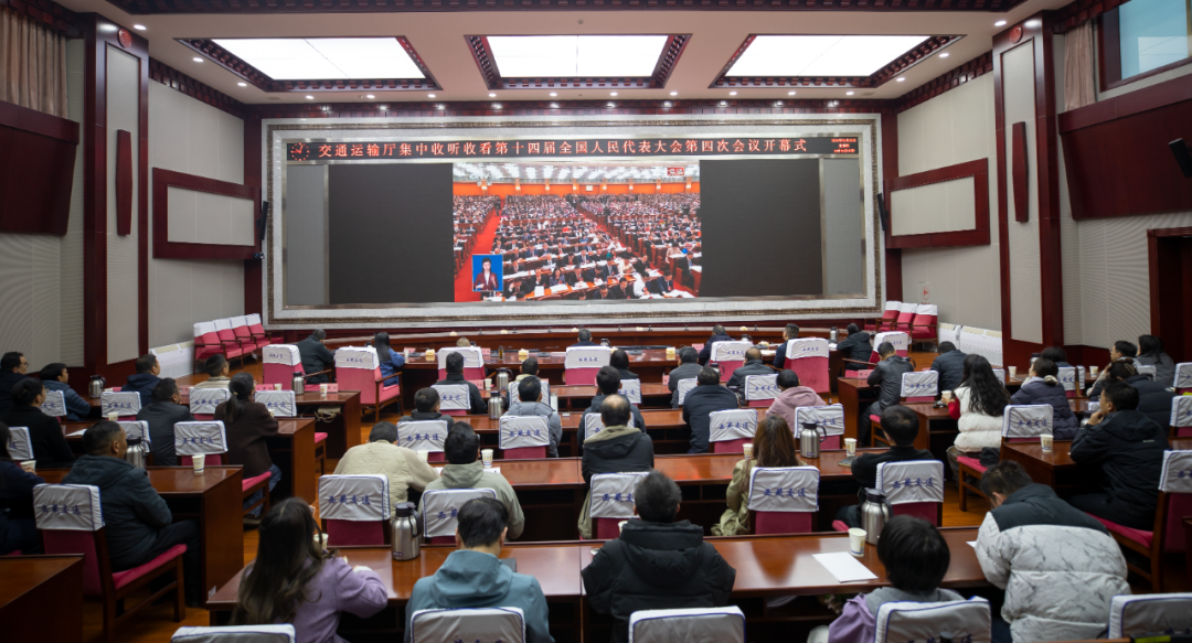 3月5日上午9时,第十四届全国人民代表大会第四次会议在北京人民大会堂开幕。区交通运输厅干部职工在厅机关多功能会议室通过大屏幕收看大会开幕盛况。