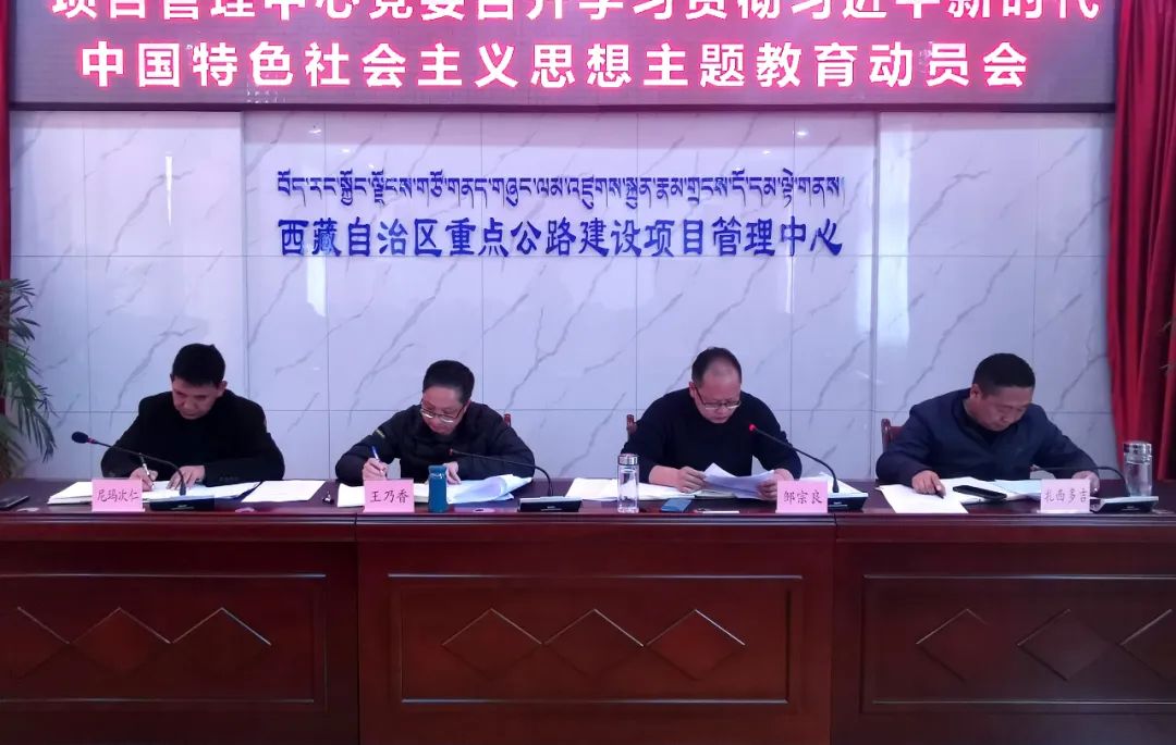 动员会上,宣读了《关于成立西藏自治区重点公路建设项目管理中心学习贯彻习近平新时代中国特色社会主义思想主题教育工作领导小组的通知》,传达学习了《习近平总书记在学习贯彻习近平新时代中国特色社会主义思想主题教育工作会议上的重要讲话精神》《王君正书记在自治区学习贯彻习近平新时代中国特色社会主义思想主题教育工作会议上的讲话精神》《达娃欧珠书记在自治区交通运输厅学习贯彻习近平新时代中国特色社会主义思想主题教育工作主题教育动员会上的讲话精神》。