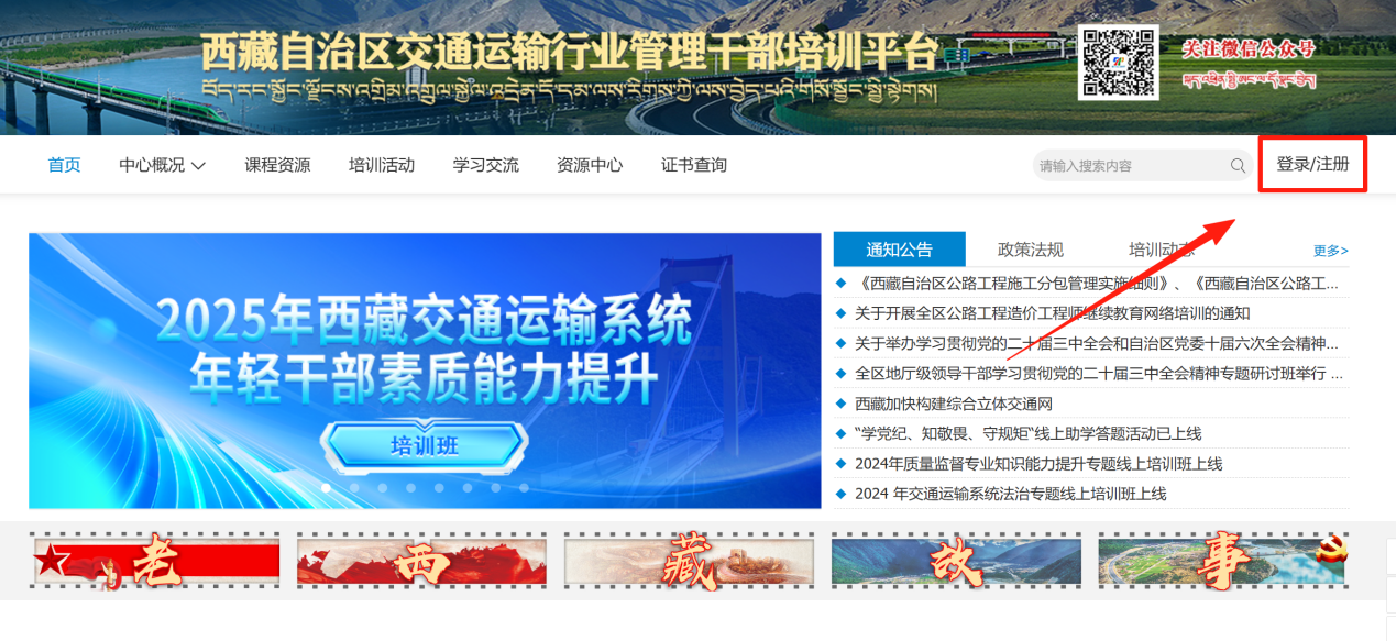 1.手机微信端扫描下方二维码,关注公众号“西藏交通运输厅干部教育培训中心”,点击“分院建设”- “上海分院”。