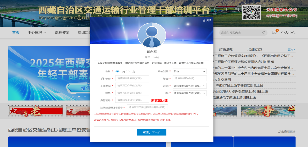 (2)首次登录的学员,需要根据提示完善相关个人信息。图1-2